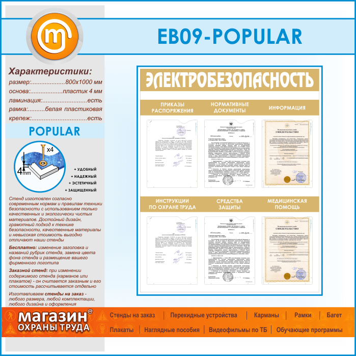 Стенд «Электробезопасность» с 6 карманами (EB-09-POPULAR) в Кызыле купить