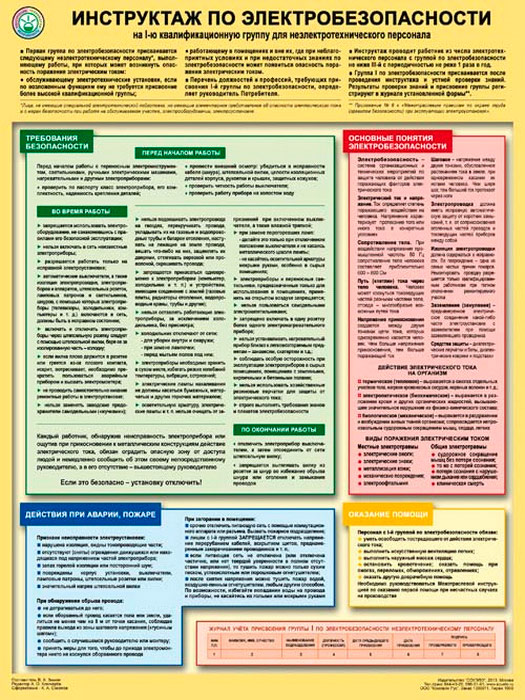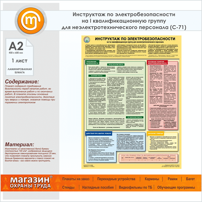 Плакат «Инструктаж по электробезопасности - на I квалификационную группу для неэлектротехнического персонала» (С-71, ламинированная бумага, А2, 1 лист) в Кызыле купить