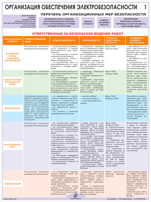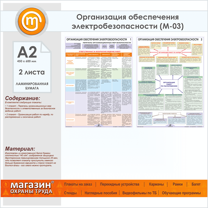Плакаты «Организация обеспечения электробезопасности» (М-03, ламинированная бумага, А2, 2 листа) в Кызыле купить