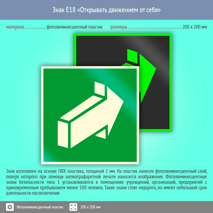 Знак E18 «Открывать движением от себя» (фотолюминесцентный пластик, 200х200 мм) в Кызыле купить