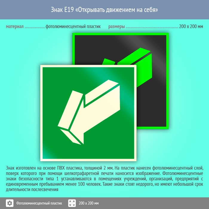 Знак E19 «Открывать движением на себя» (фотолюминесцентный пластик, 200х200 мм) в Кызыле купить