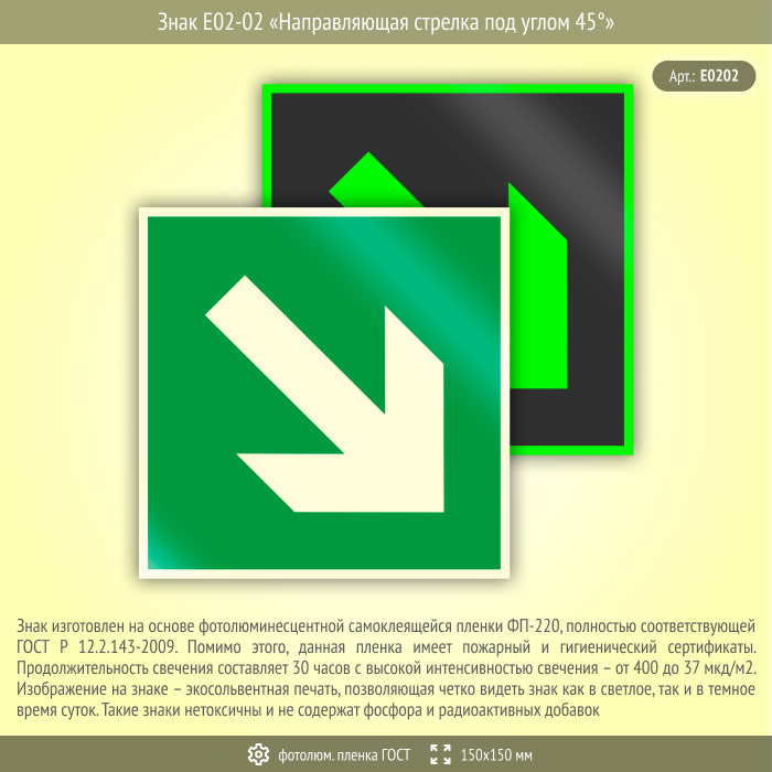 Знак E02-02 «Направляющая стрелка под углом 45°» (фотолюминесцентная пленка ГОСТ 34428-2018, 150х150 мм) в Кызыле купить