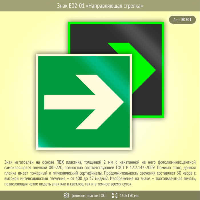 Знак E02-01 «Направляющая стрелка» (фотолюминесцентный пластик ГОСТ 34428-2018, 150х150 мм) в Кызыле купить