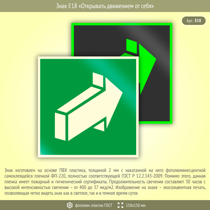 Знак E18 «Открывать движением от себя» (фотолюминесцентный пластик ГОСТ 34428-2018, 150х150 мм) в Кызыле купить