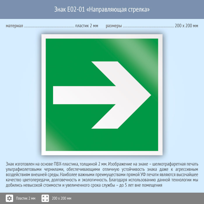 Знак E02-01 «Направляющая стрелка» (пластик, 200х200 мм) в Кызыле купить