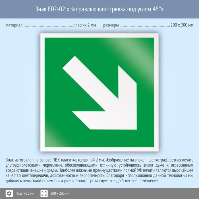 Знак E02-02 «Направляющая стрелка под углом 45°» (пластик, 200х200 мм) в Кызыле купить