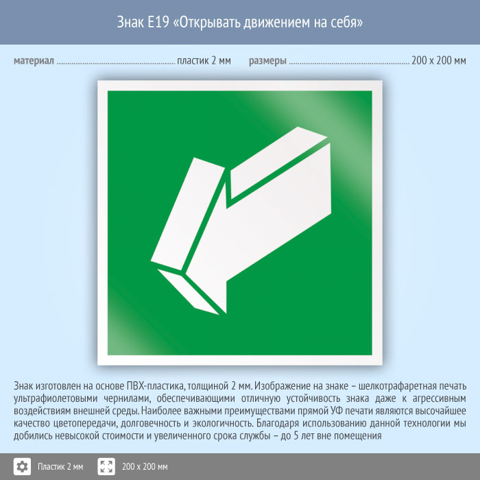 Знак E19 «Открывать движением на себя» (пластик, 200х200 мм) в Кызыле купить
