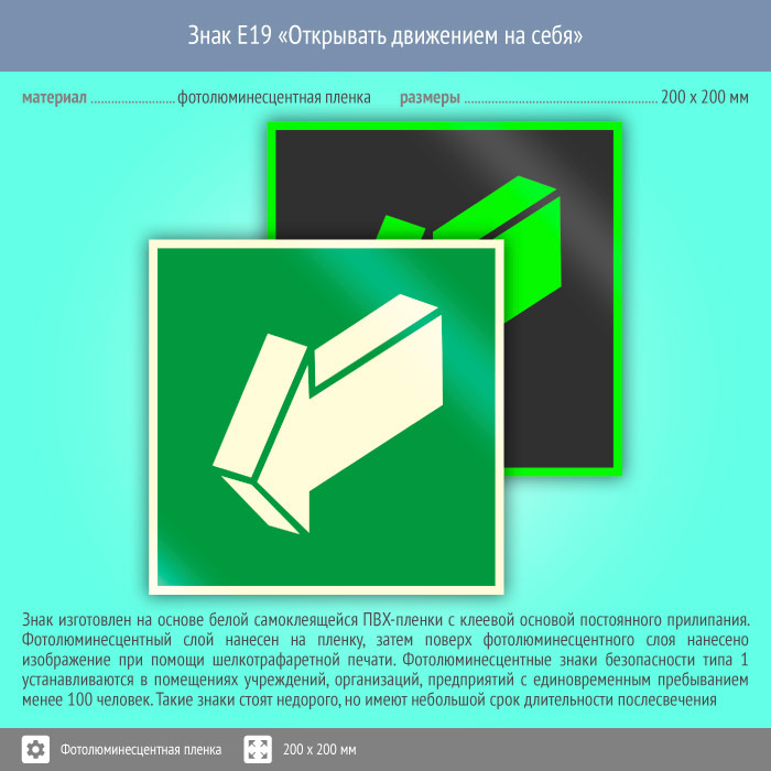 Знак E19 «Открывать движением на себя» (фотолюминесцентная пленка, 200х200 мм) в Кызыле купить