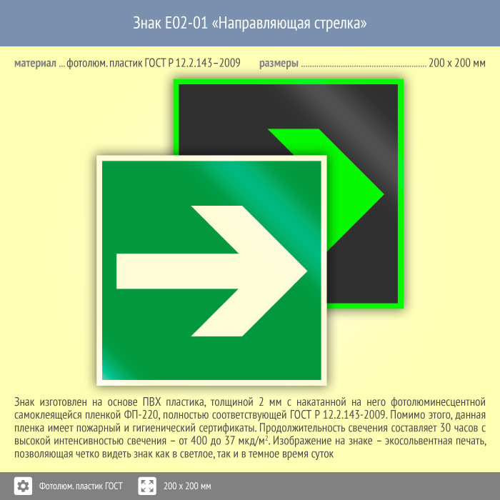 Знак E02-01 «Направляющая стрелка» (фотолюминесцентный пластик ГОСТ 34428-2018, 200х200 мм) в Кызыле купить