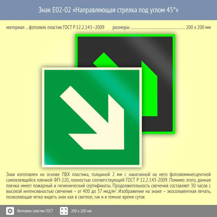 Знак E02-02 «Направляющая стрелка под углом 45°» (фотолюминесцентный пластик ГОСТ 34428-2018, 200х200 мм) в Кызыле купить