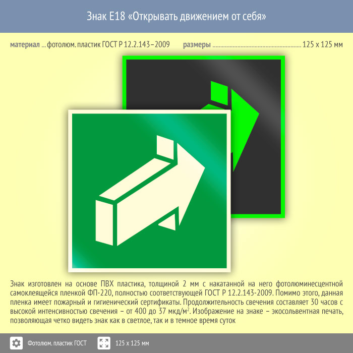 Знак E18 «Открывать движением от себя» (фотолюминесцентный пластик ГОСТ 34428-2018, 125х125 мм) в Кызыле купить