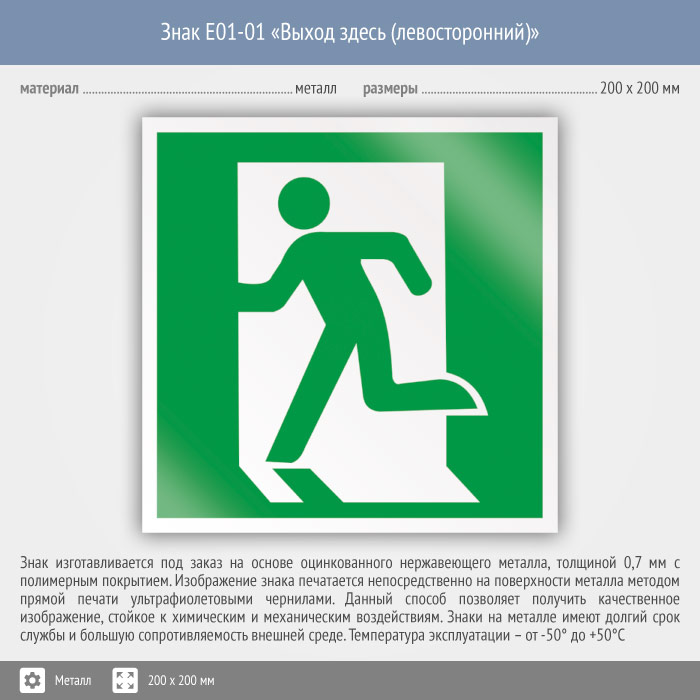 Знак E01-01 «Выход здесь (левосторонний)» (металл, 200х200 мм) в Кызыле купить
