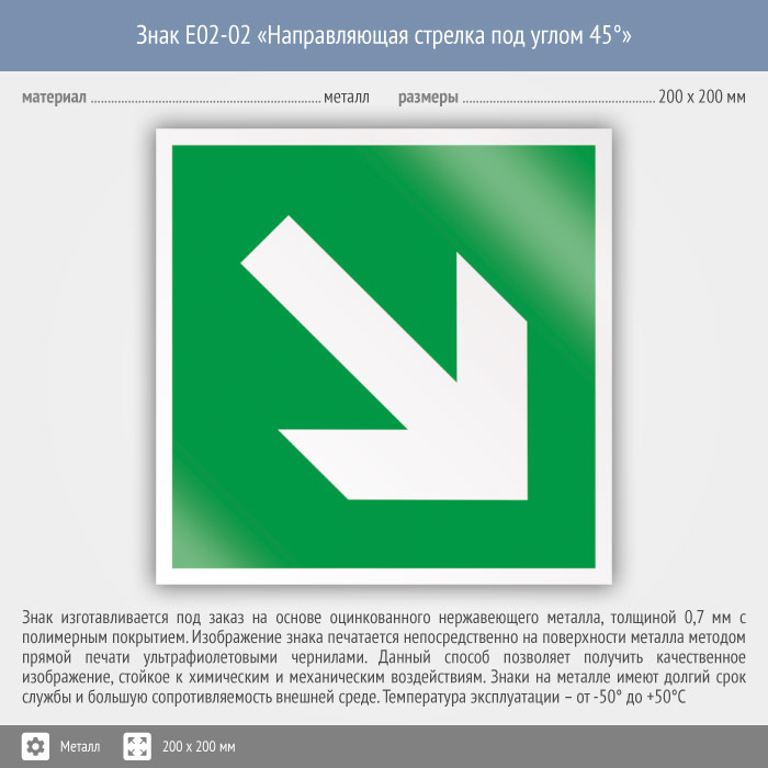 Знак E02-02 «Направляющая стрелка под углом 45°» (металл, 200х200 мм) в Кызыле купить