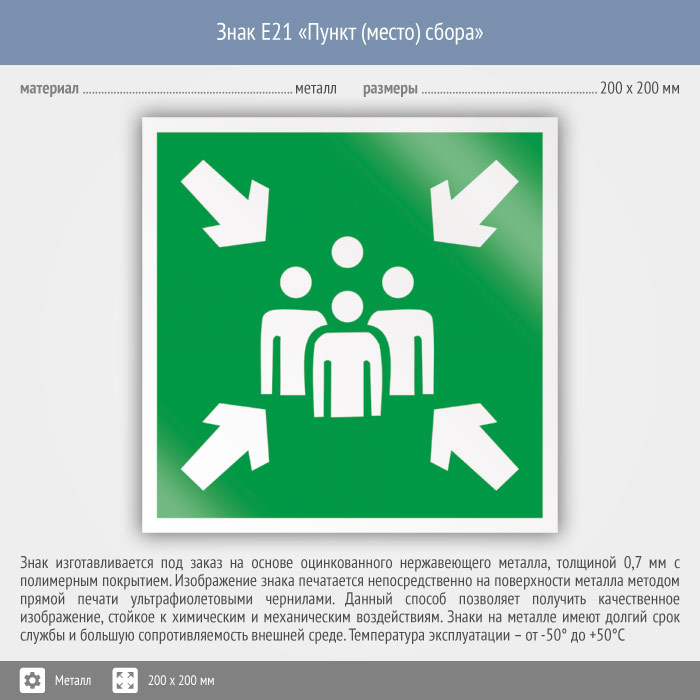 Знак E21 «Пункт (место) сбора» (металл, 200х200 мм) в Кызыле купить