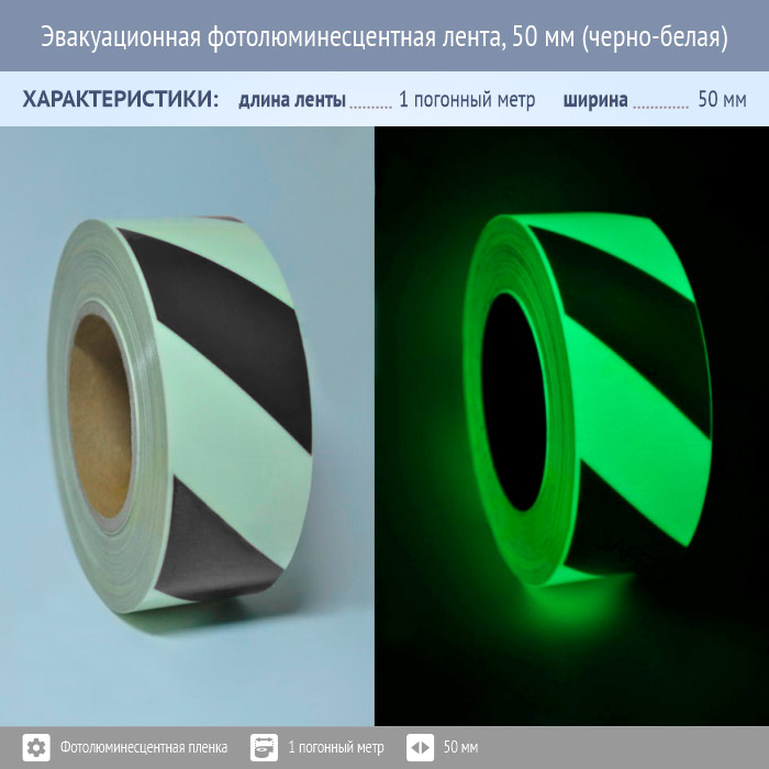 Эвакуационная фотолюминесцентная лента, 50 мм (черно-белая) в Кызыле купить