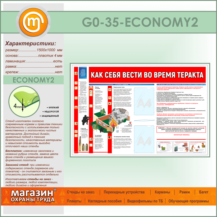 Стенд «Как себя вести во время теракта» c 2 карманами (GO-35-ECONOMY2) в Кызыле купить