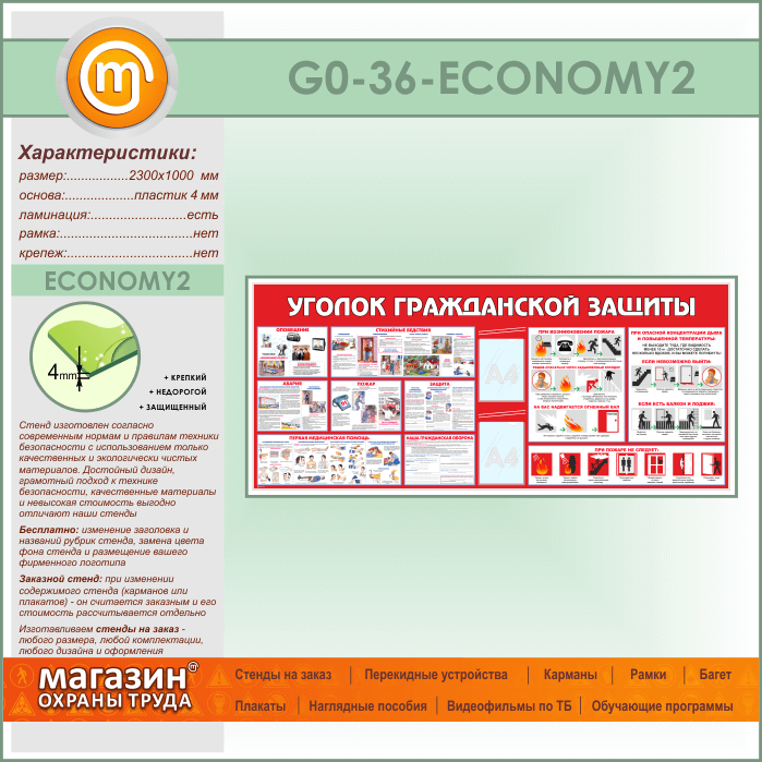 Стенд «Уголок гражданской защиты» c 2 карманами (GO-36-ECONOMY2) в Кызыле купить