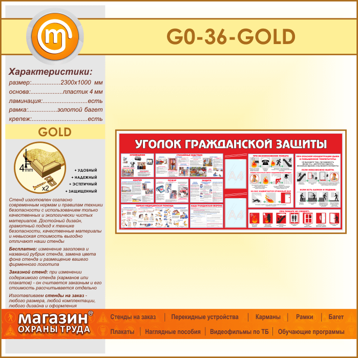 Стенд «Уголок гражданской защиты» c 2 карманами (GO-36-GOLD) в Кызыле купить