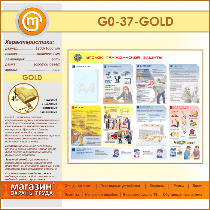 Стенд «Уголок гражданской защиты» с карманом (GO-37-GOLD) в Кызыле купить