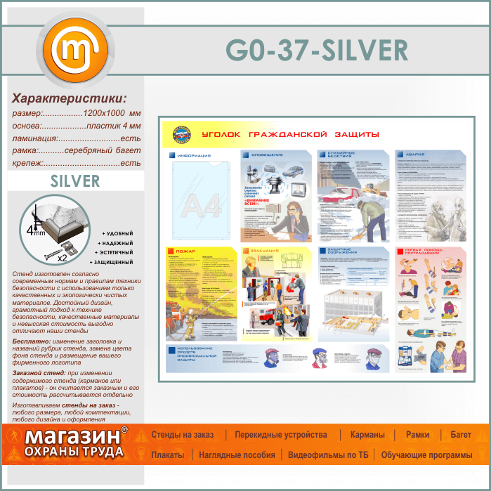 Стенд «Уголок гражданской защиты» с карманом (GO-37-SILVER) в Кызыле купить