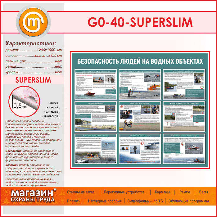Стенд «Безопасность людей на водных объектах» (GO-40-SUPERSLIM) в Кызыле купить
