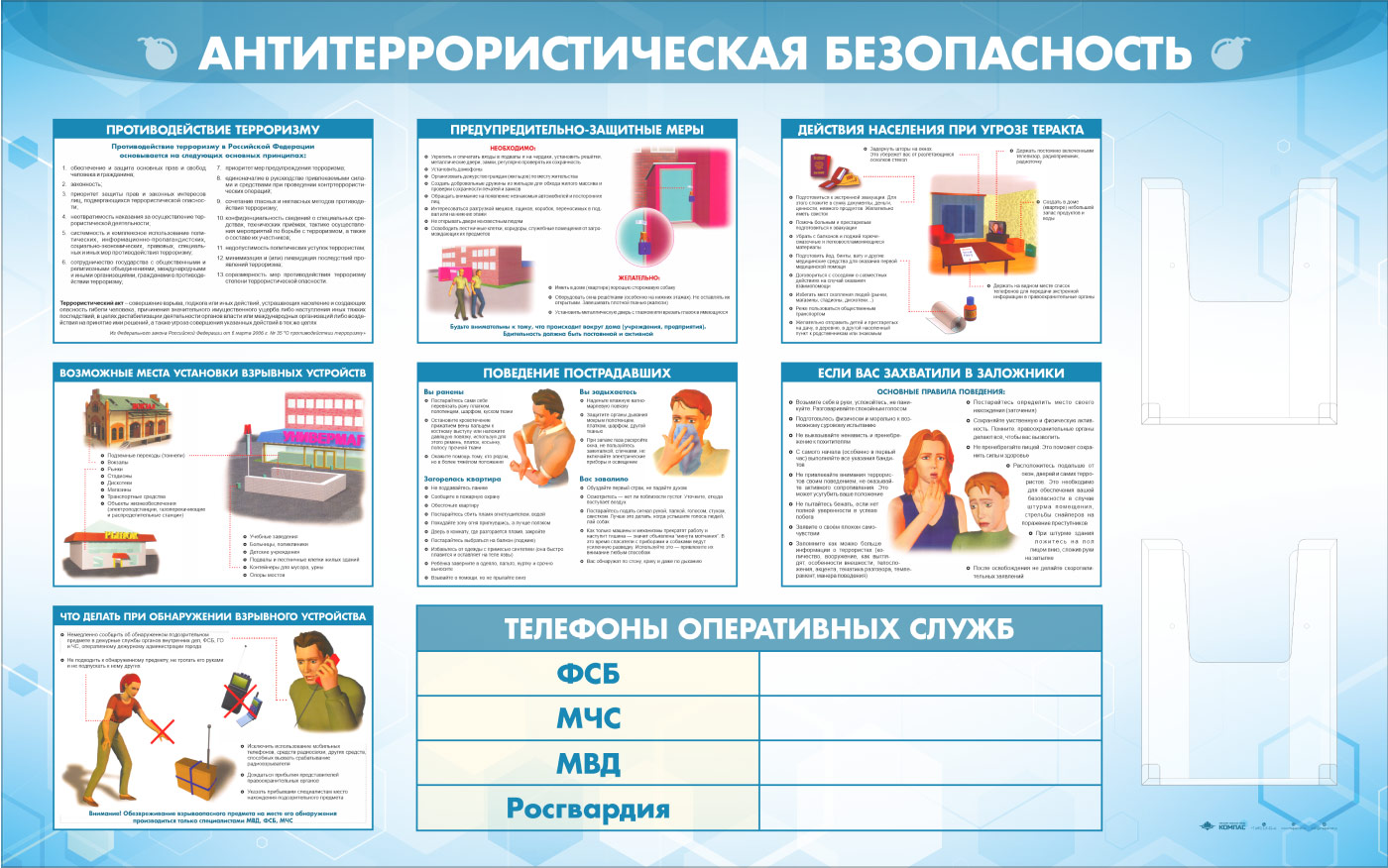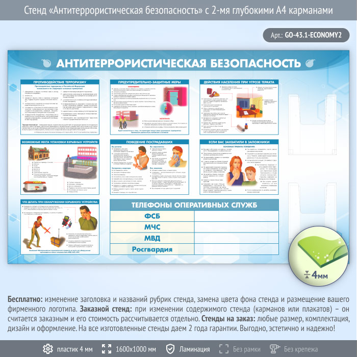 Стенд «Антитеррористическая безопасность» с 2-мя глубокими А4 карманами (GO-43.1-ECONOMY2) в Кызыле купить