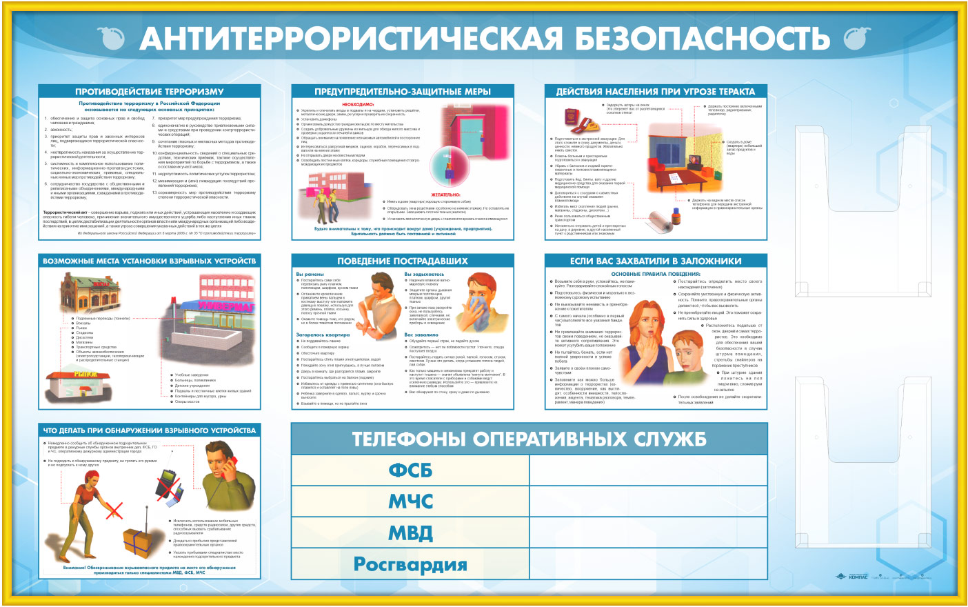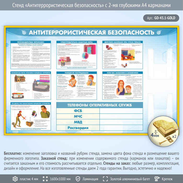 Стенд «Антитеррористическая безопасность» с 2-мя глубокими А4 карманами (GO-43.1-GOLD) в Кызыле купить