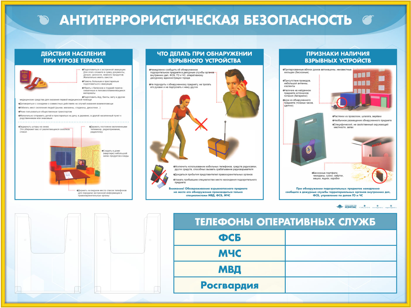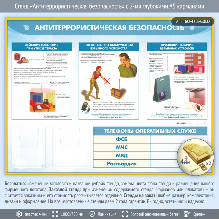 Стенд «Антитеррористическая безопасность» с 2-мя глубокими А5 карманами (GO-43.3-GOLD) в Кызыле купить