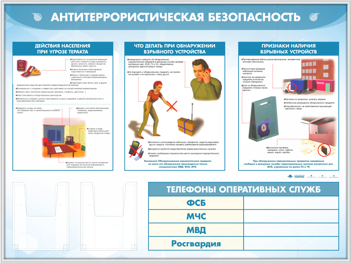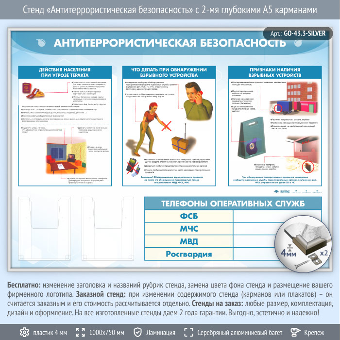 Стенд «Антитеррористическая безопасность» с 2-мя глубокими А5 карманами (GO-43.3-SILVER) в Кызыле купить