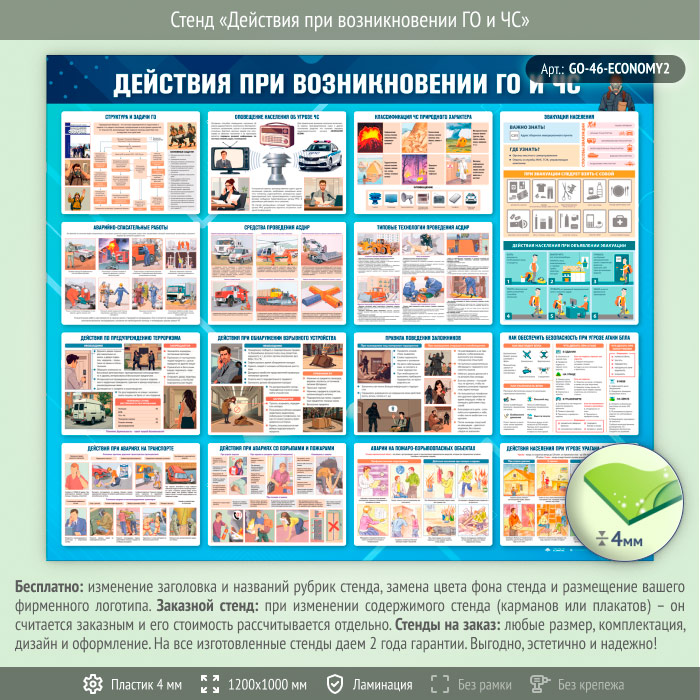 Стенд «Действия при возникновении ГО и ЧС» (GO-46-ECONOMY2) в Кызыле купить