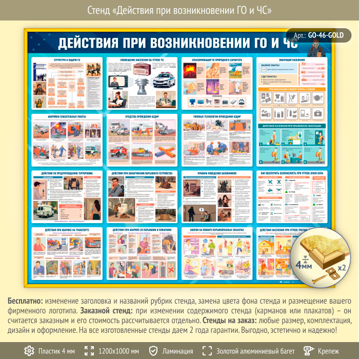 Стенд «Действия при возникновении ГО и ЧС» (GO-46-GOLD) в Кызыле купить