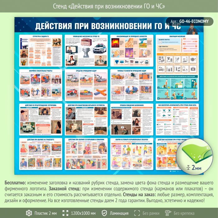 Стенд «Действия при возникновении ГО и ЧС» (GO-46-ECONOMY) в Кызыле купить