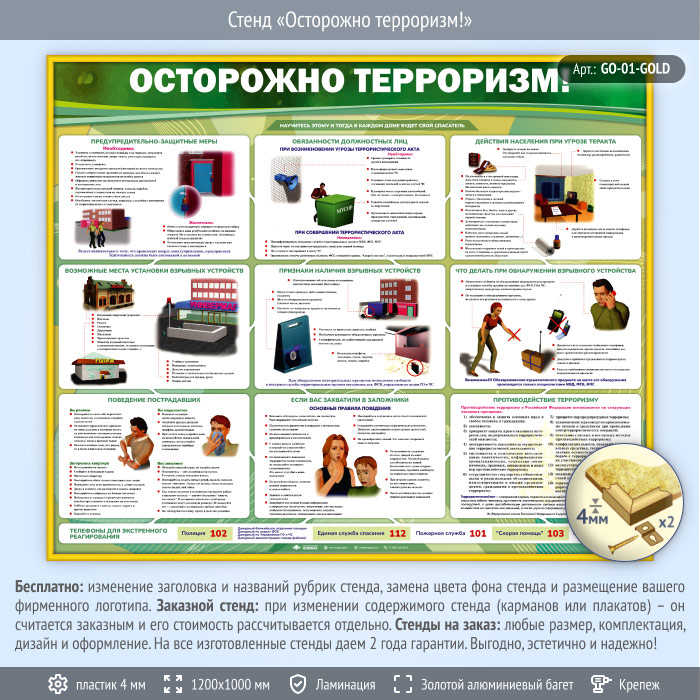 Стенд «Осторожно терроризм!» (GO-01-GOLD) в Кызыле купить