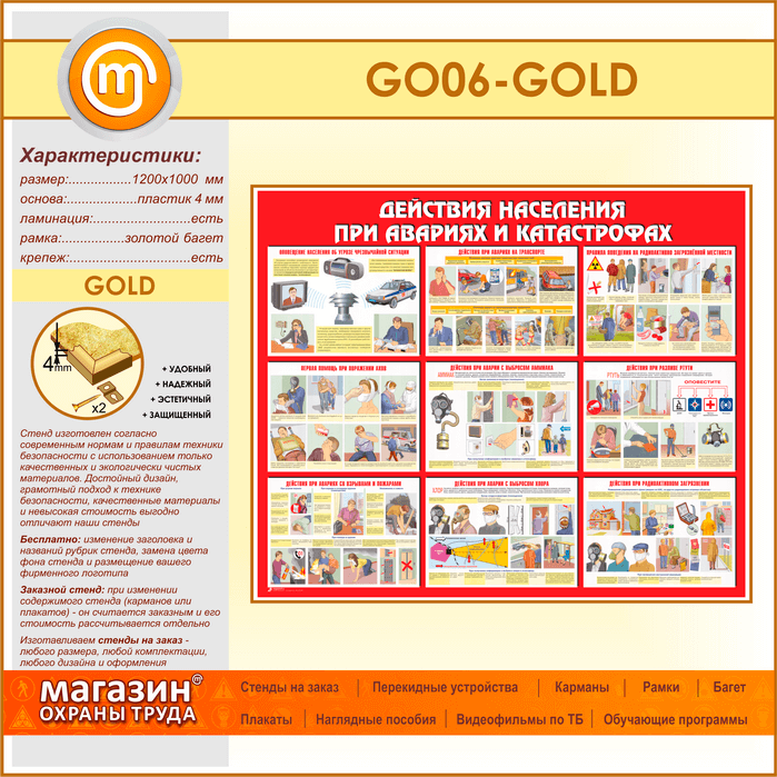 Стенд «Действия населения при авариях и катастрофах» (GO-06-GOLD) в Кызыле купить