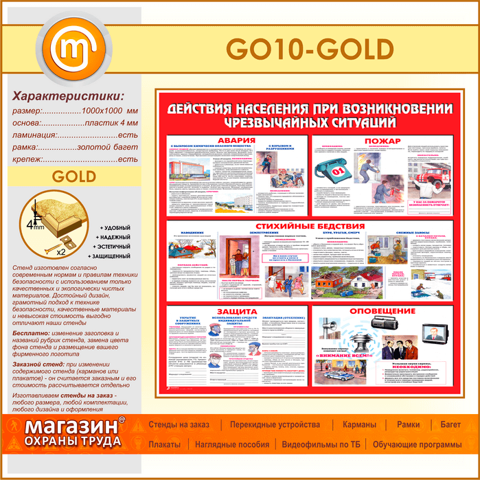 Стенд «Действия населения при возникновении чрезвычайных ситуаций» (GO-10-GOLD) в Кызыле купить