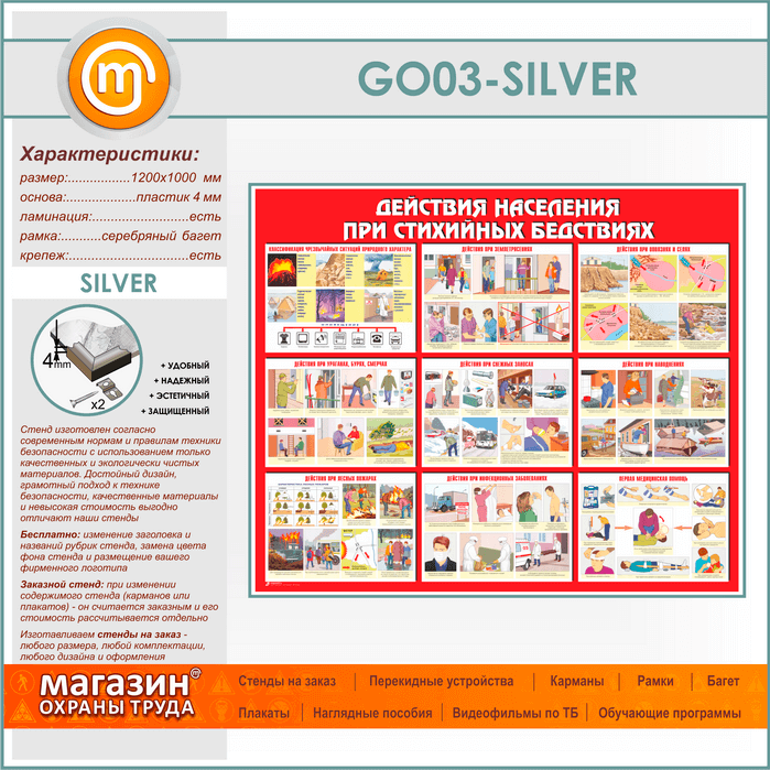 Стенд «Действия населения при стихийных бедствиях» (GO-03-SILVER) в Кызыле купить