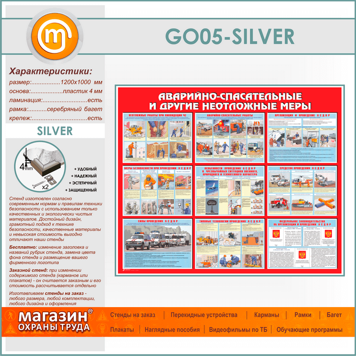 Стенд «Аварийно-спасательные и другие неотложные меры» (GO-05-SILVER) в Кызыле купить