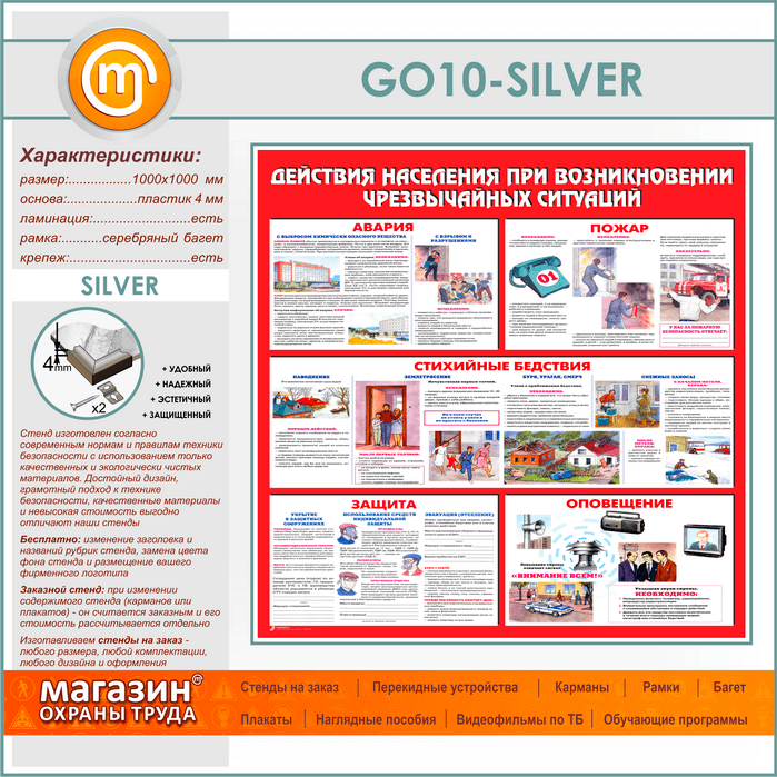 Стенд «Действия населения при возникновении чрезвычайных ситуаций» (GO-10-SILVER) в Кызыле купить