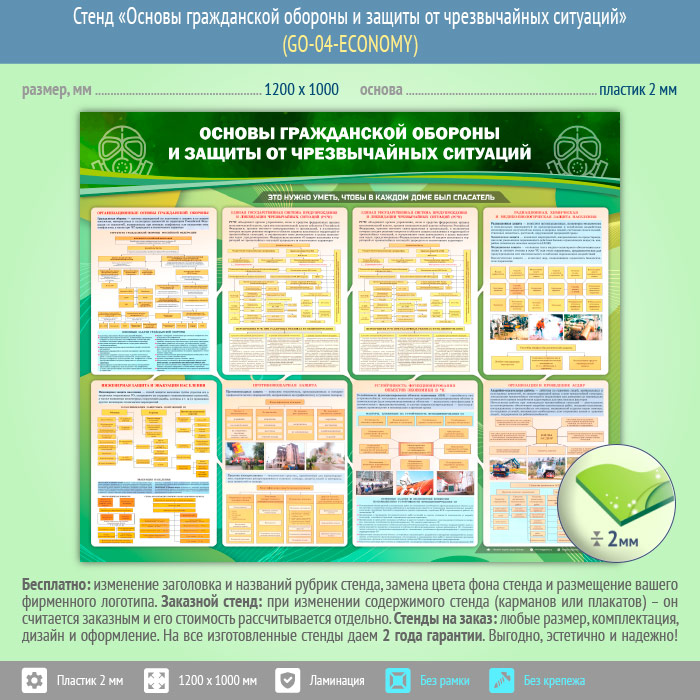 Стенд «Основы гражданской обороны и защиты от чрезвычайных ситуаций» (GO-04-ECONOMY) в Кызыле купить