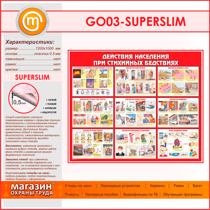Стенд «Действия населения при стихийных бедствиях» (GO-03-SUPERSLIM) в Кызыле купить