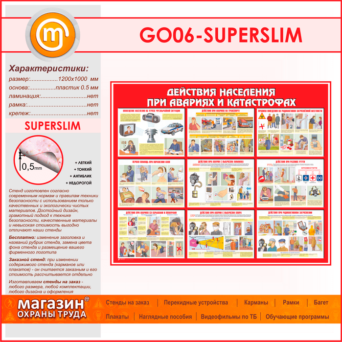 Стенд «Действия населения при авариях и катастрофах» (GO-06-SUPERSLIM) в Кызыле купить