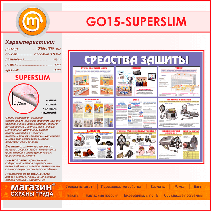 Стенд «Средства защиты» (GO-15-SUPERSLIM) в Кызыле купить