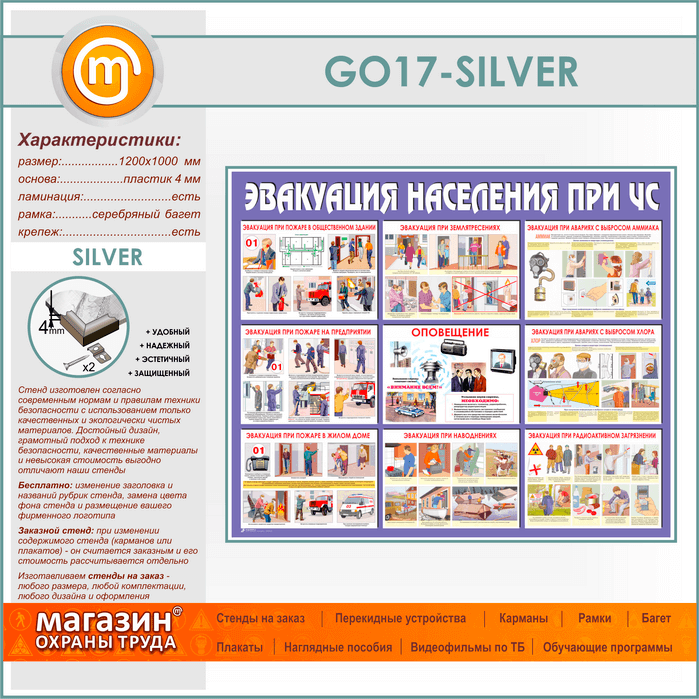 Стенд «Эвакуация населения при ЧС» (GO-17-SILVER) в Кызыле купить
