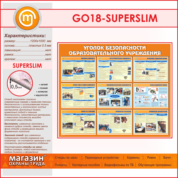 Стенд «Уголок безопасности образовательного учреждения» (GO-18-SUPERSLIM) в Кызыле купить