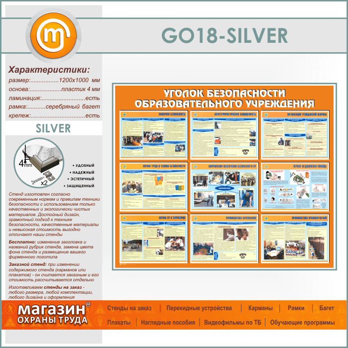 Стенд «Уголок безопасности образовательного учреждения» (GO-18-SILVER) в Кызыле купить