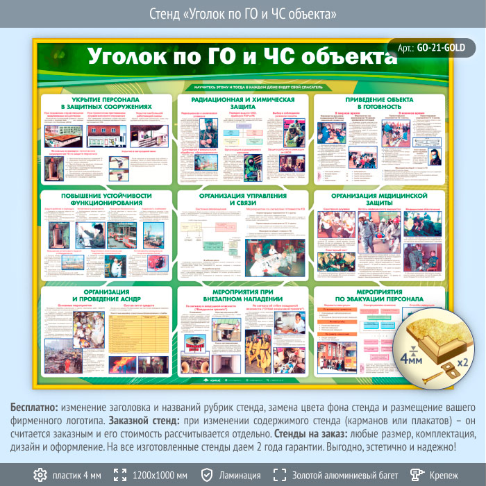 Стенд «Уголок по ГО и ЧС объекта» (GO-21-GOLD) в Кызыле купить