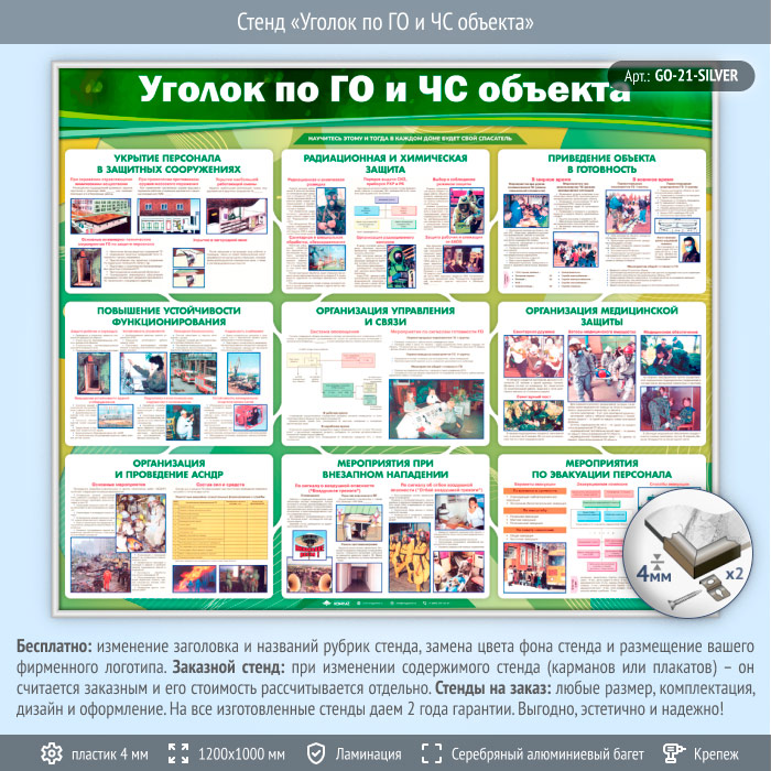 Стенд «Уголок по ГО и ЧС объекта» (GO-21-SILVER) в Кызыле купить