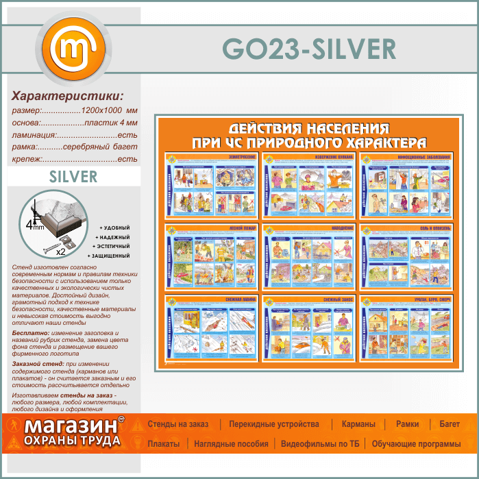 Стенд «Действия населения при ЧС природного характера» (GO-23-SILVER) в Кызыле купить