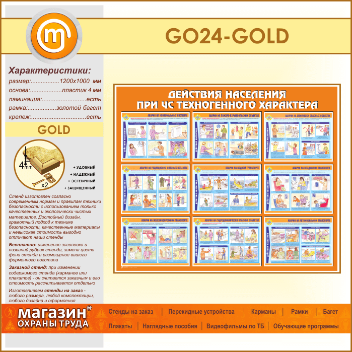Стенд «Действия населения при ЧС техногенного характера» (GO-24-GOLD) в Кызыле купить