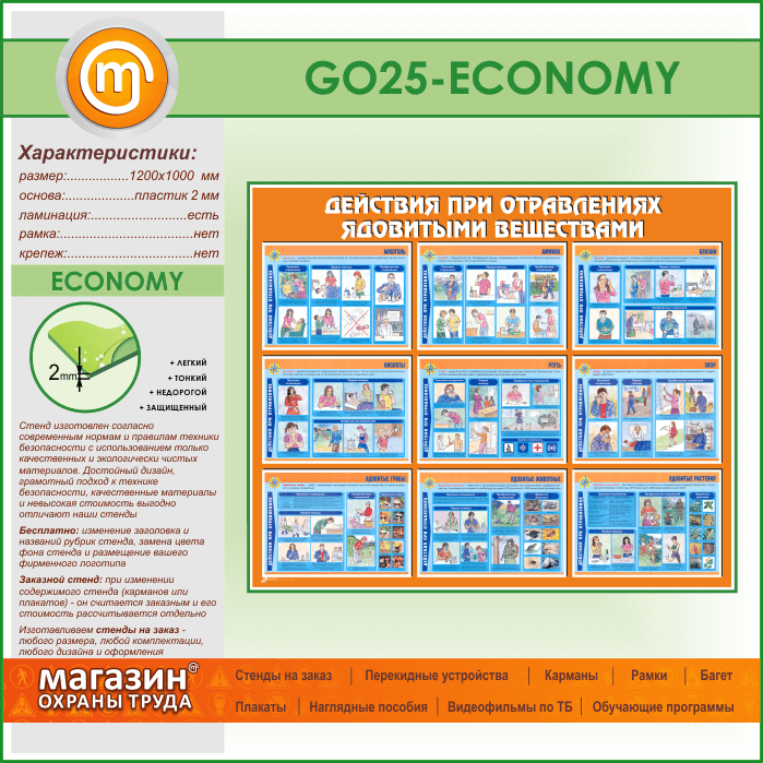 Стенд «Действия при отравлении ядовитыми веществами» (GO-25-ECONOMY) в Кызыле купить